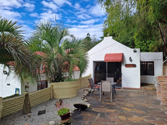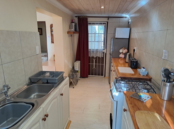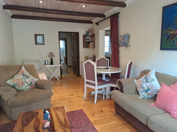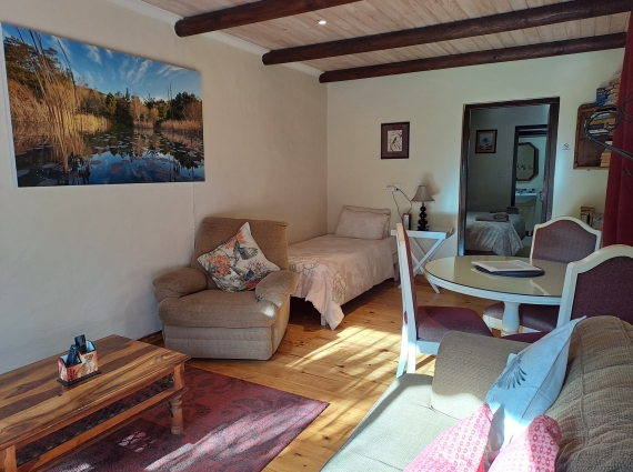 Sunbird is a light, bright, modern style brick cottage. Nestled in a private enclosed furnished patio garden which lends itself as a Pet Friendly option. It has it's own brick built braai (barbecue) facility where Sunbirds and Cape White Eyes can often be seen in the overhanging Bottle Brush Tree. A sliding glass patio door opens into the lounge/dining area with flat screen DSTV and book selection. An additional single bed for a 3rd person is provided at additional cost (however, please note that access to the en-suite facilities is via the bedroom only). The lounge leads through to the separate bedroom with a queen-sized bed, fitted wardrobe with drawers and hairdryer through to the en-suite shower room with toilet. Heaters and fan provided. Adjacent to the lounge is a fully equipped kitchen with gas oven and 4 burner gas hob, fridge/freezer, microwave, kettle, toaster, toasted sandwich maker, iron/ironing board etc and there is a safety deposit box.